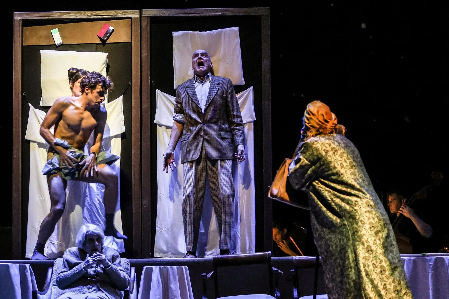 Die Seniorenresidenz Abendsonne bedeutet für die alten Bewohner die Endstation ihres Lebens, für das junge Pflegepersonal viel Arbeit, für die Leitung ein ausbaufähiges Geschäftsmodell. Unruhe entsteht, als Büxenstein eine Krebsdiagnose erhält. Als pensionierter Arzt weiss er, dass er nur noch wenig Zeit hat. Nach einem Gespräch mit Stella, die sich in metaphysischen Fragen auskennt, verfestigt sich in ihm die Idee, seine Wiedergeburt in die Wege zu leiten. Seine Freunde Hagedorn und Sägebarth sind nach einigen Zweifeln bereit, ihm zu helfen. Nach Stellas Rezept braucht man nur ein junges Liebespaar - also planen sie, die junge Pflegerin Mira und den neuen Pfleger Mirko zu verkuppeln. Büxenstein schreibt sein Testament, in dem er Mira und ihr zukünftiges Kind - also sich selbst - reich bedenkt. Und tatsächlich, die beiden jungen Menschen verlieben sich ineinander. Stella ist in die Pläne nicht eingeweiht, aber sie liest drohendes Unheil aus den Karten und macht sich Sorgen. Als das Liebespaar von den alten Herren endlich in die Liebesnacht gelotst wird, scheint der Plan aufzugehen. Im letzten Moment kommt es anders... Eine Tragikomödie des Überlebens von Tomasz Skweres (Musik) und Kristine Tornquist (Libretto und Regie), erstmalig auf die Bühne gebracht vom sirene Operntheater.